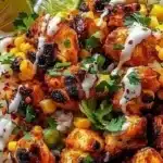 In each bowl, begin with a generous portion of rice. Slice the cooked chicken and arrange it beautifully on top. Add the street corn mixture, and don’t forget to sprinkle extra cheese and cilantro for garnish. A drizzle of lime crema (made with sour cream, lime juice, and a pinch of salt) can take it to another level.
