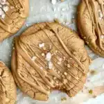 - Melt 2 tablespoons of cookie butter in the microwave for 15-20 seconds. Drizzle this melted cookie butter over the baked cookies and sprinkle with flaked salt. Allow to cool and set.