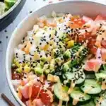 You can easily customize these sushi bowls by adding other ingredients. Fresh shrimp, cooked chicken, or tofu can be great alternatives to imitation crab. You can also choose different vegetables based on what you like or have on hand.