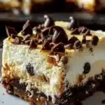 Delicious Cannoli Cheesecake Bars topped with creamy filling and chocolate chips.