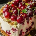 An easy and delicious cherry pistachio cheesecake that combines smooth cream cheese with cherries and crunchy pistachios, perfect for impressing guests or treating yourself.