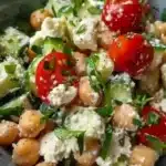 Delicious Cottage Cheese Chickpea Salad with fresh vegetables and herbs