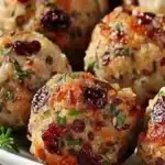 Cranberry Turkey Stuffing Balls can be served warm right out of the oven. They make a great appetizer or side dish. You can even pair them with your favorite dipping sauce, such as cranberry sauce or gravy, to enhance the flavor. They also work well on a holiday buffet or as part of a festive meal.
