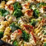 A comforting and quick pasta dish featuring creamy sauce, rotisserie chicken, and broccoli, perfect for busy weeknights.