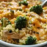 A one-pot wonder filled with tender chicken, vibrant broccoli, and gooey cheese over a bed of rice, perfect for family dinners and cozy weeknights.