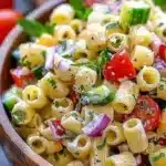A colorful, tasty pasta salad packed with fresh ingredients, perfect for picnics and cookouts.