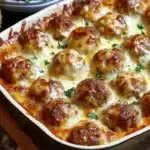 A comforting and effortless casserole featuring layers of savory meatballs, rich pasta sauce, and gooey cheese, perfect for busy weeknights.