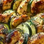 - Bake for 25-30 minutes or until the chicken reaches an internal temperature of 165°F and the zucchinis are tender.