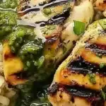 - Serve the chicken on a bed of rice, generously drizzling the green sauce over the top.