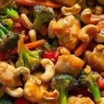 A quick and easy sheet pan meal featuring chicken, colorful vegetables, and crunchy cashews, perfect for a hassle-free dinner.