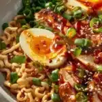 And there you have it—your new go-to Fiery Chicken Ramen with Creamy Garlic Sauce. Now go impress someone—or yourself—with your new culinary skills. You’ve earned it. Remember to whip out that Instagram before and after shot for the gram and revel in the glory of your ramen masterpiece. Get in the kitchen, have fun, and may your bowls always be full. Happy slurping!