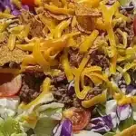 A vibrant dish featuring ground beef, cabbage, and crunchy Fritos, perfect for family dinners and gatherings.