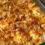 A creamy, cheesy casserole of crispy, golden goodness that evokes warmth and nostalgia, perfect for gatherings and celebrations.