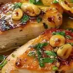 A bright squeeze of lemon just before serving lifts the buttery notes. Fresh herbs like parsley or chives add color and a clean herbal finish. For an extra glossy look spoon some of the warm pan butter over the sliced chicken right before you plate.