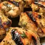 Tender chunks of marinated chicken skewers infused with vibrant flavors and a delightful smokiness, perfect for summer barbecues.
