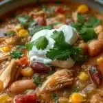 A comforting and easy-to-prepare white chicken chili packed with protein and fiber, perfect for cold nights.