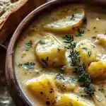 A comforting, rich, and creamy potato soup with cheddar cheese and fresh herbs that warms your soul on chilly days.