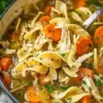 A classic homestyle chicken noodle soup packed with flavor and warmth, perfect for family dinners and chilly evenings.