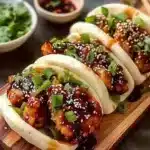 Korean Chicken Bao Buns are a tasty and fun dish. They bring together different flavors and textures that everyone will love. The fluffy steamed buns are soft and warm, while the crispy chicken adds a satisfying crunch. The spicy-sweet Korean sauce gives a burst of flavor, and the fresh herbs and crunchy slaw make every bite exciting. It’s a great dish for gatherings with friends and family or even for a quick weeknight dinner.