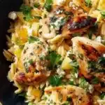 A quick and easy weeknight dinner featuring juicy chicken, creamy feta, and bright lemon flavors, all cooked in a comforting orzo pasta.