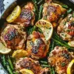 A delicious one-pan dish featuring tender chicken thighs sautéed with garlic, lemon juice, and green beans for a quick, flavorful meal.