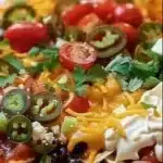 The Loaded Nacho Christmas Board isn’t just a dish; it’s more of a celebration built around togetherness and delicious flavors. The sights and tastes of a well-made nacho board can elevate your holiday gatherings, bringing people together in laughter and light-hearted conversation. With its endless possibilities for customization and garnishing, your loaded nacho board promises to be a delightful centerpiece that captures the spirit of Christmas.