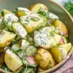 A refreshing potato and cucumber salad with a creamy dill dressing, perfect for picnics or as a light side dish.