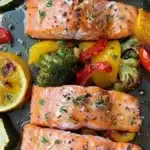 A quick and easy one-pan recipe for flavorful salmon paired with vibrant roasted veggies.
