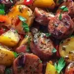 A quick and easy one-pan meal featuring sausage, potatoes, and veggies, perfect for busy weeknights.