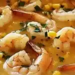 A delightful and creamy shrimp corn bisque, combining the sweetness of corn and savory shrimp for a comforting dish.