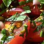 Tomato and herb salads have roots in many cuisines. Simple combinations of tomato, onion, oil and vinegar show up around the Mediterranean and beyond. What makes this version charming is its simplicity and versatility. People often tell me they feel like they are tasting summer memories with the first forkful of a fresh tomato salad. It is the kind of recipe that invites conversation and that can be adapted while remaining faithful to its core idea.