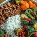 Embracing the vibrancy of vegetables with the savory depth of seasoned meat, this stir-fry bowl offers a delightful balance nobody can resist. The best part? It’s easily adaptable to personal taste, making it a practical recipe for anyone to enjoy.