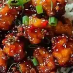 Delicious Sweet Chili Chicken dish garnished with fresh herbs