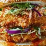 Okay, let’s get real. This recipe is practically foolproof. Seriously, even I didn’t mess it up, and if you knew my history in the kitchen, you’d understand what a big deal that is. What’s brilliant about this beauty is it combines crunchy fried chicken, cool coleslaw, and a sweet yet spicy Thai chili sauce all in one bun. It’s like a flavor explosion that you can hold with your hands. Plus, it’s super flexible. Feeling saucy? Add extra chili sauce. Want to be healthy? Pile on the coleslaw. There are no limits here, friend.