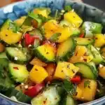 A refreshing Thai salad that combines sweet mango, crisp cucumber, and a tangy dressing, perfect for warm days.
