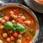 A warm and comforting Tomato Basil Chickpea Soup that combines rich chickpeas with bright tomatoes and fresh basil, perfect for weeknight dinners or cozy lunches.