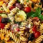 A vibrant and crunchy vegetarian pasta salad that’s easy to make and perfect for any occasion.