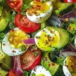 First off, this salad is idiot-proof. Even I didn’t mess it up last time, which is saying something. You don’t need to be a master chef to whip this up. All it takes are a few simple ingredients that you probably already have lounging around in your kitchen. And let’s be real here: Who doesn’t want an excuse to enjoy creamy avocado and protein-packed eggs in one bowl? You can munch on it straight from the bowl or serve it on toast — honestly, no judgment either way.